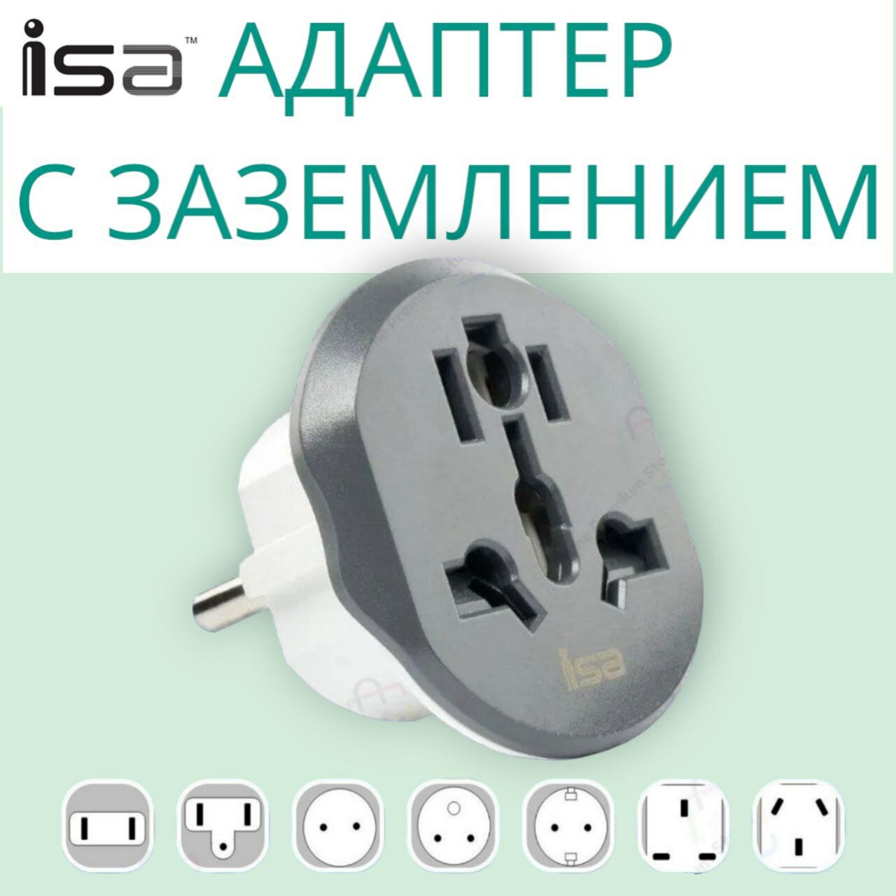 Купить Евро-переходник на все виды розеток ISA, серый