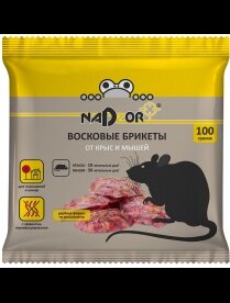 Восковые брикеты для крыс и мышей NADZOR, восковые, 100 гр
