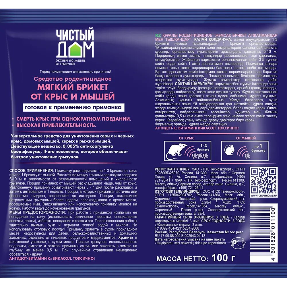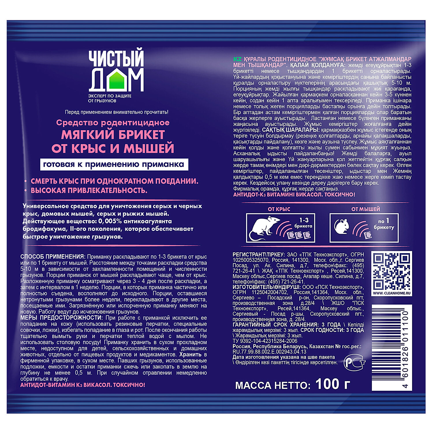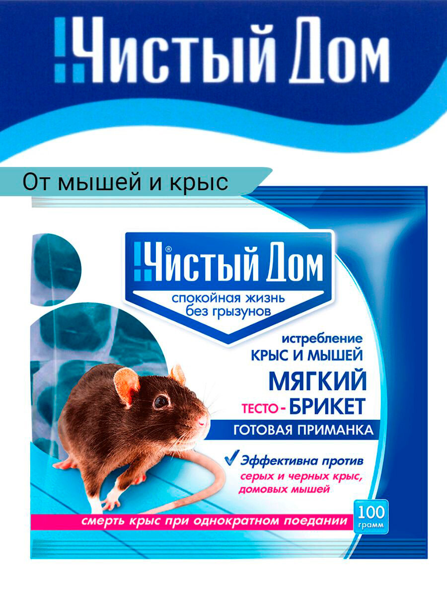 Средство от крыс и мышей Чистый дом мягкий тесто-брикет 100 г