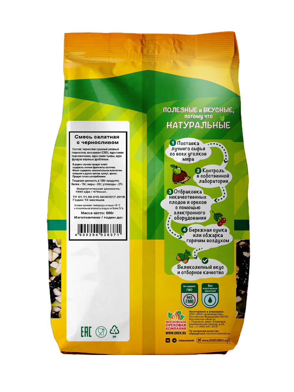 | Не содержит | ГМО / искусственные красители / соль |