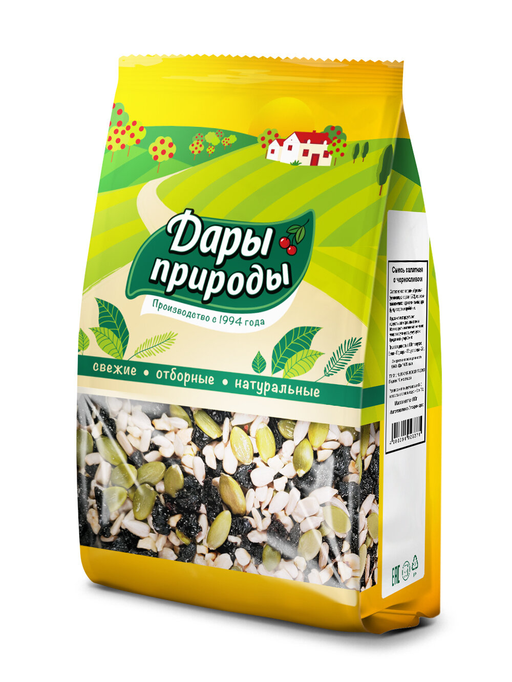 Купить Смесь семян для салата Дары природы салатная смесь из чернослива, семечек подсолнечника, тыквы и жареного дробленого фундука, 500 г