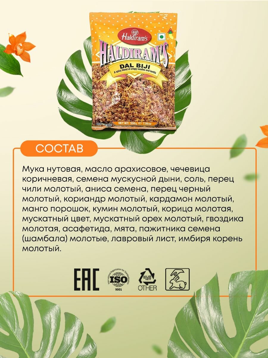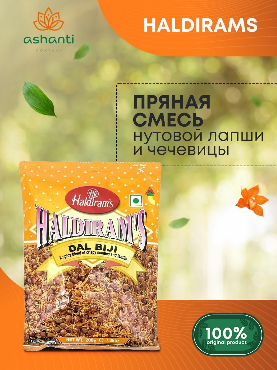 Haldirams Сухая Закуска Дал Биджи (Dal Biji) пряная смесь нутовой лапши и чечевицы, Халдирамс, 200г интересное: