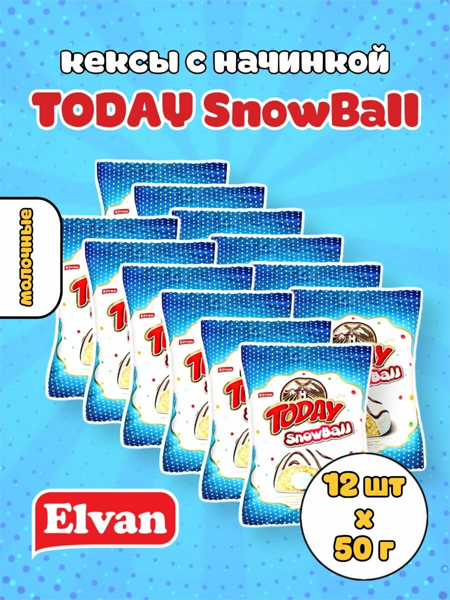 Купить Пончики Elvan TODAY Snowball/кексы турецкие бисквиты/пирожные с молочной начинкой 12 шт х 50 г
