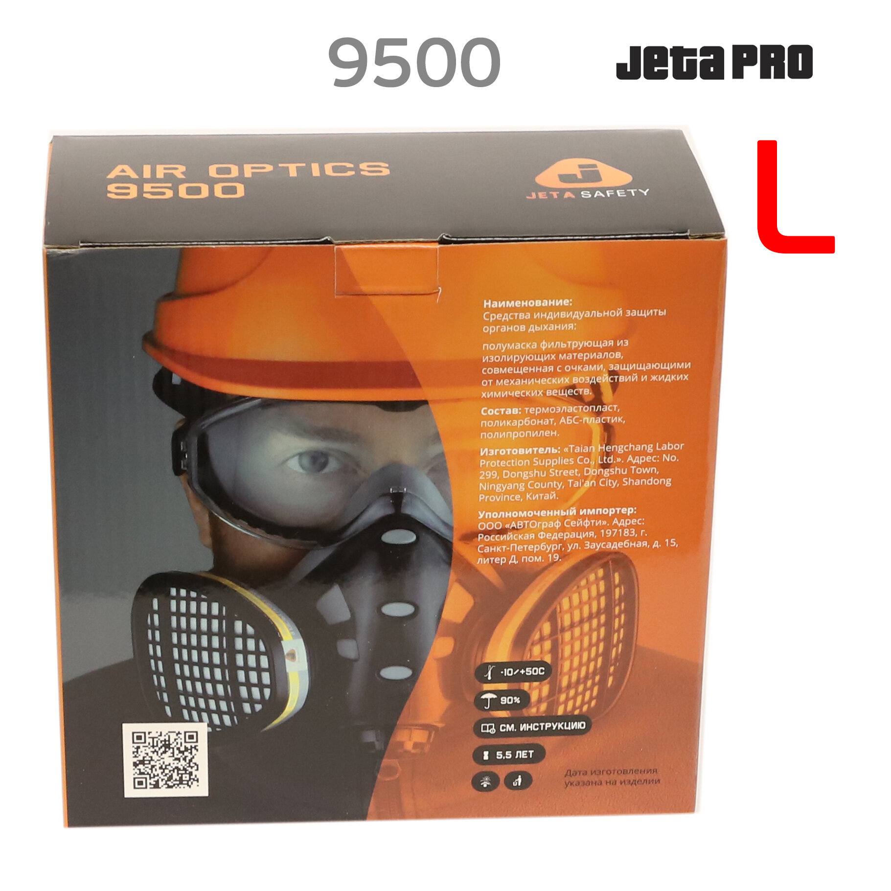 Полумаска Jeta Safety 9500-L с очками Air Optics (размер L) с байонетами, без патронов