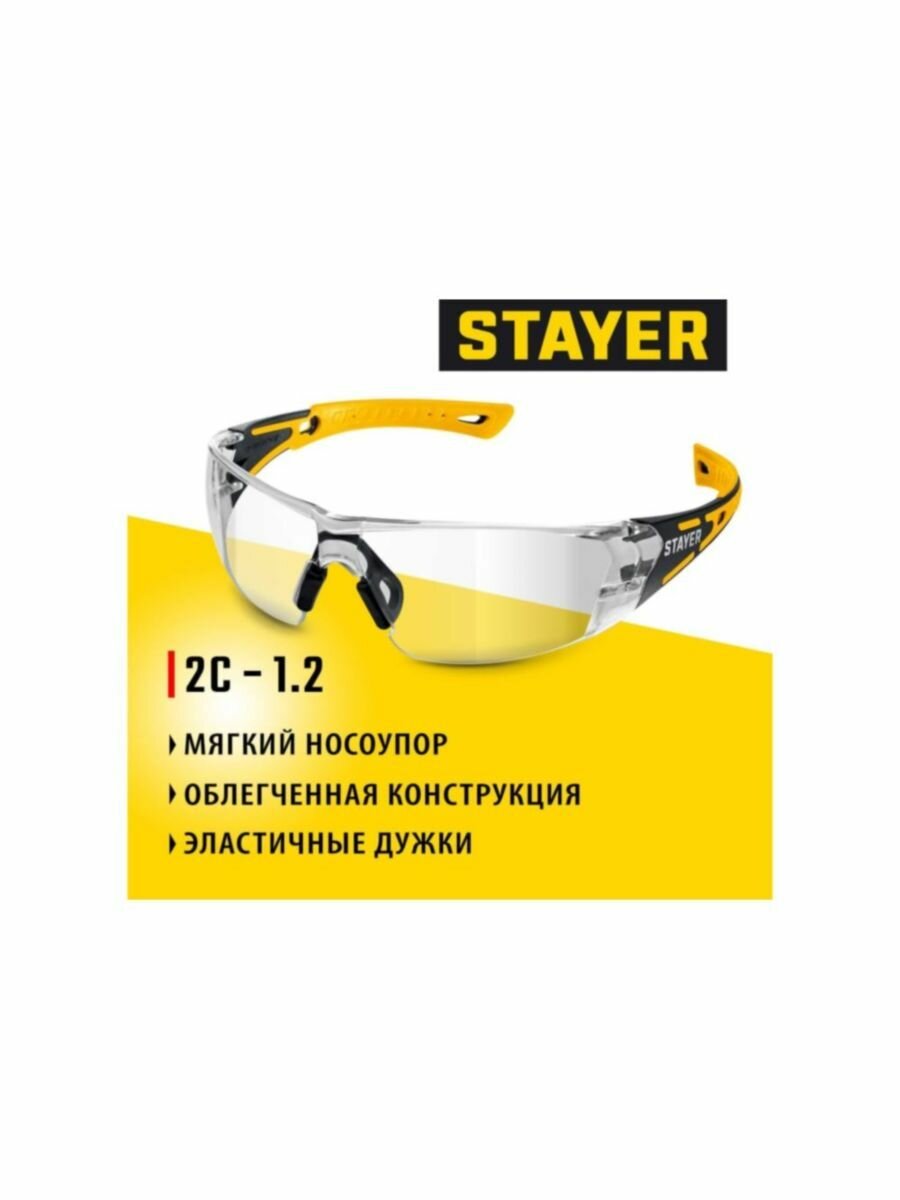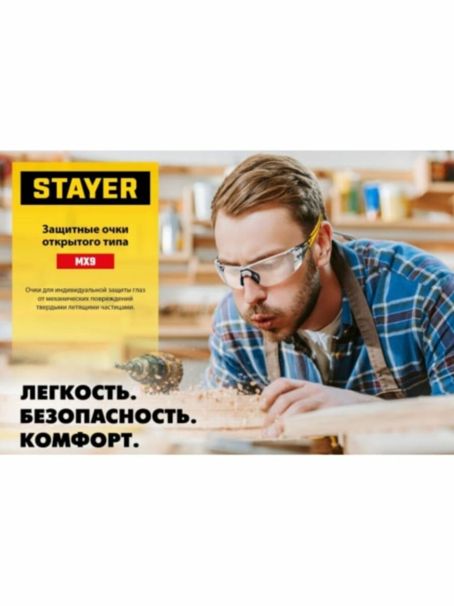 STAYER MX-9, открытого типа, прозрачные, защитные очки с двухкомпонентными дужками (110490) интересное: