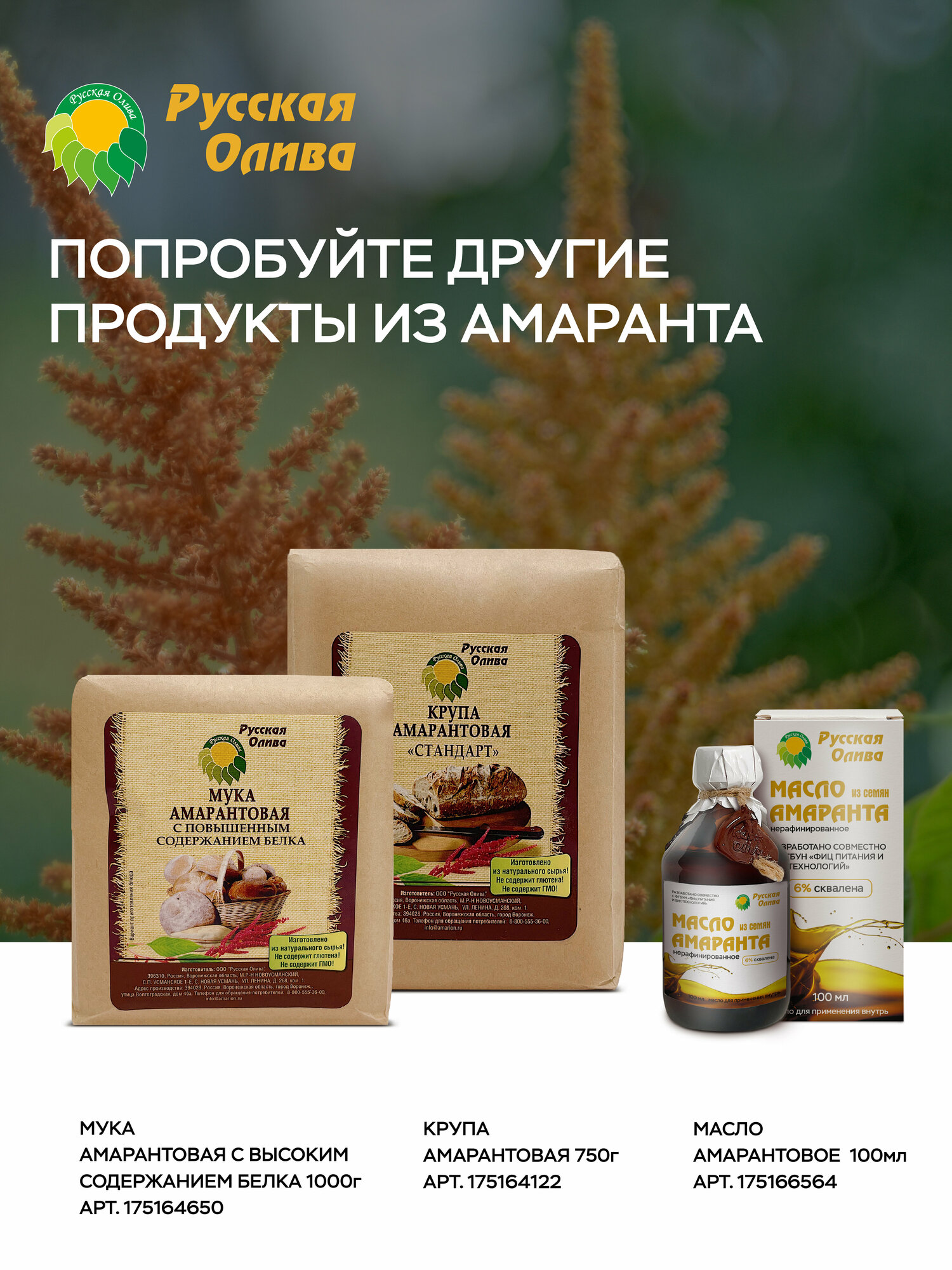 Амарантовая мука, Русская Олива, 1кг, без глютена, супер фуд, протеин интересное: