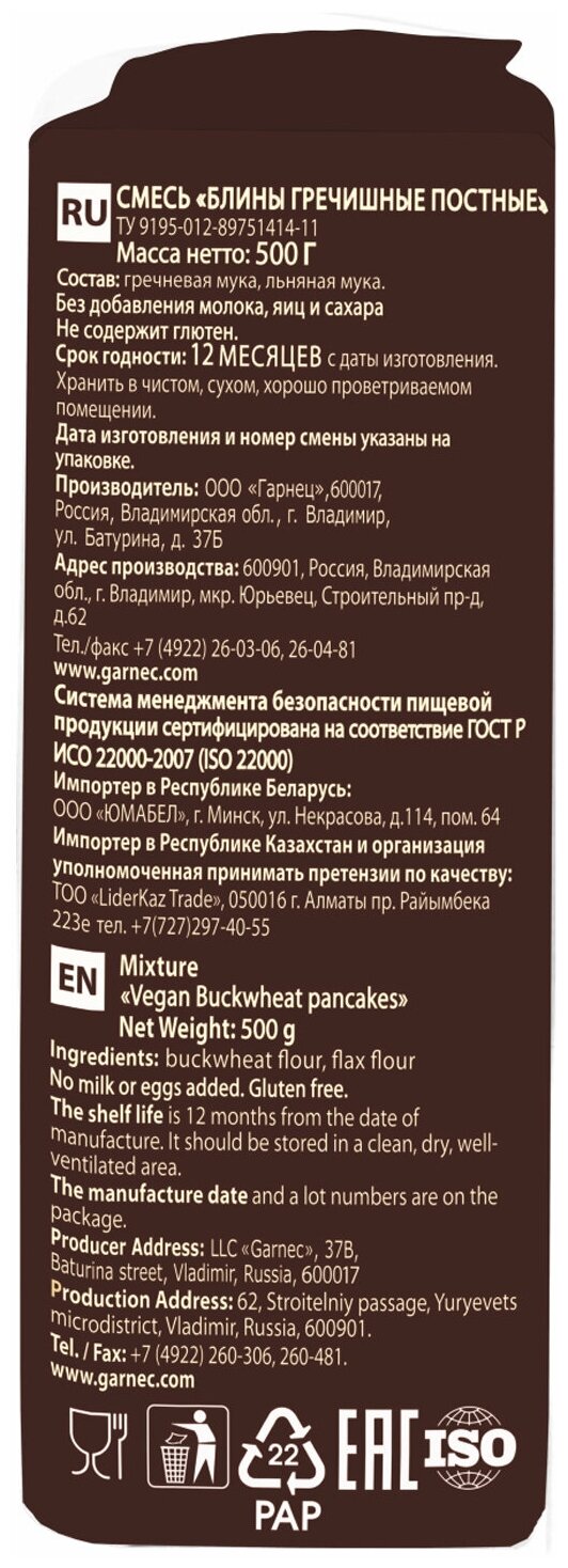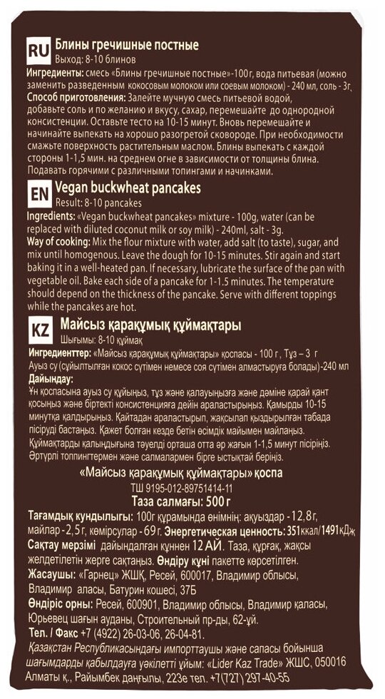 Смесь без глютена Блины гречишные постные 500 гр. интересное: