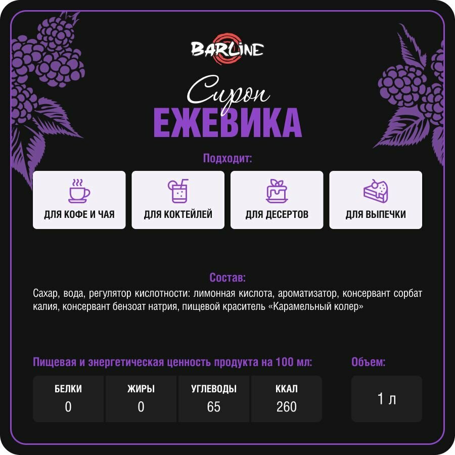 СохранитьСироп Barline Ежевика (Blackberry), 1 л, для кофе, чая, коктейлей и десертов, ПЭТ интересное: