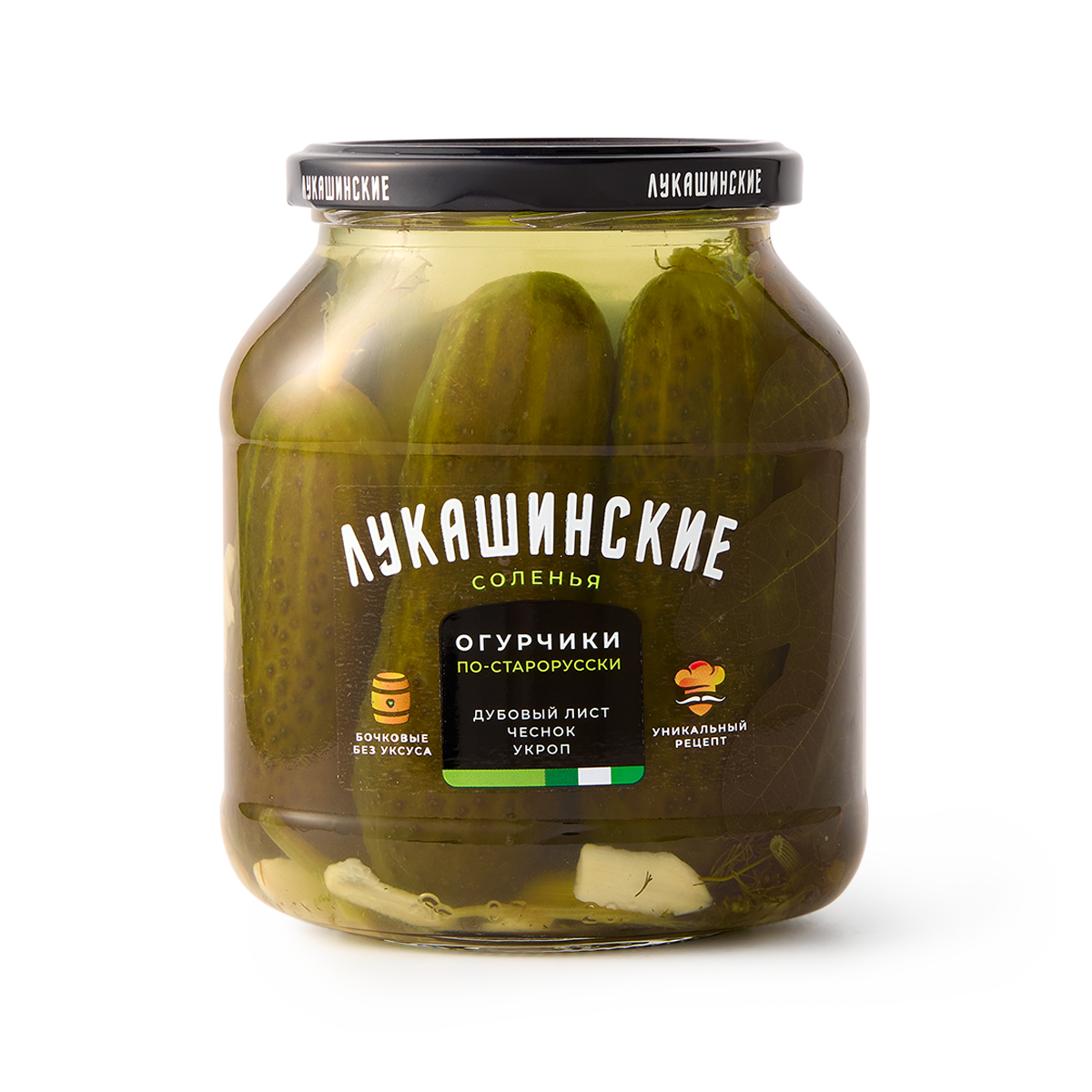Купить Огурчики "Лукашинские" солёные по-старорус. с дуб. листом 670г.