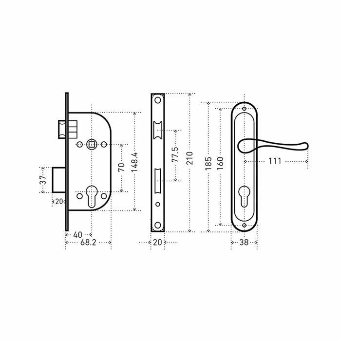 Замок врезной с ручками для деревянных дверей (левых и правых), с цилиндром, аллюр 132/1 CP, хром, расстояние 85 мм , 5 ключей