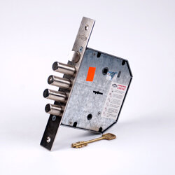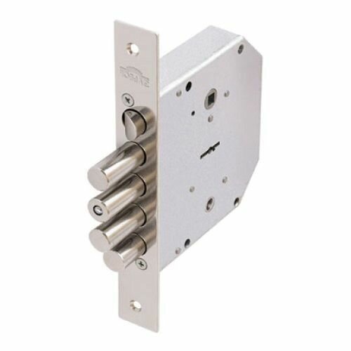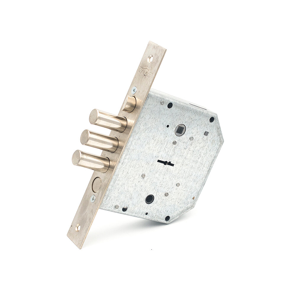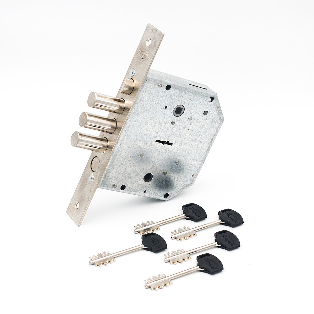 | Дополнительная информация | замок врезной сувальдный с защелкой и задвижкой. Левосторонний. Предназначен для металлических дверей. Замок имеет засов из четырех цилиндрических ригелей диаметром 18 мм, с максимальным вылетом 40 мм, защелку диаметром 18,6 мм и задвижку с вылетом 21 мм. Удаление ключевого отверстия 66,5 мм. Межосевое расстояние 42 мм (до защелки) и 47 мм (до задвижки). Количество оборотов ключа - 4. Габариты замка - 137,5х146х30 мм. Комплектация - 5 ключей, съемная торцевая планка, комплект накладок. В одном из ригелей расположен закаленный стальной стержень, обеспечивающий надежную защиту от перепиливания. Защита от криминального и силового взлома, высверливания, выдавливания. |