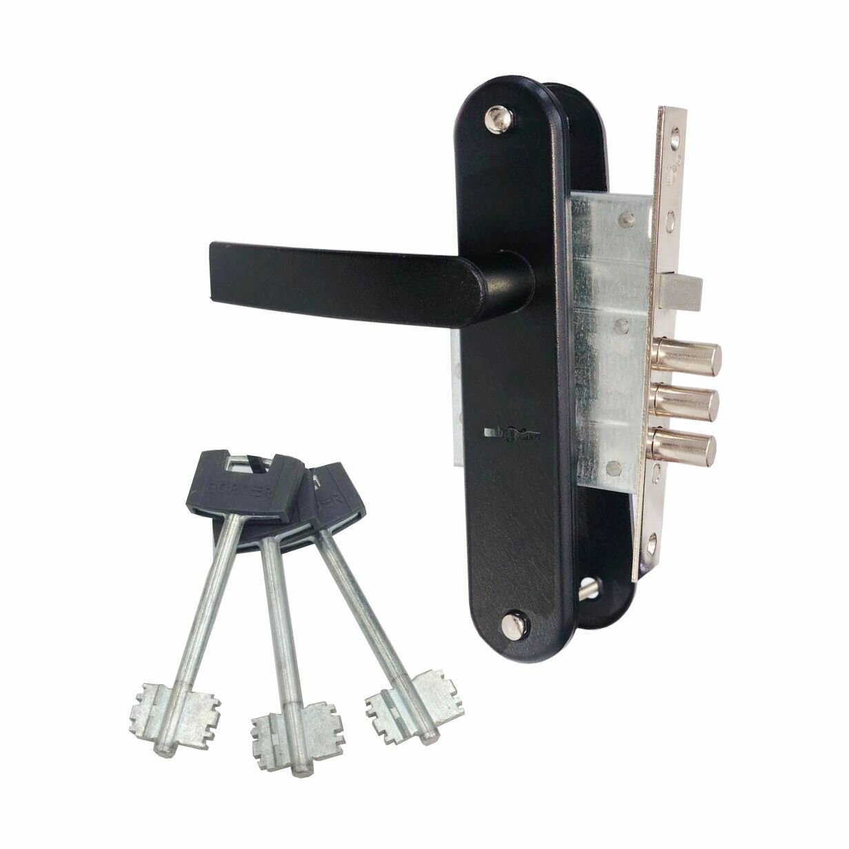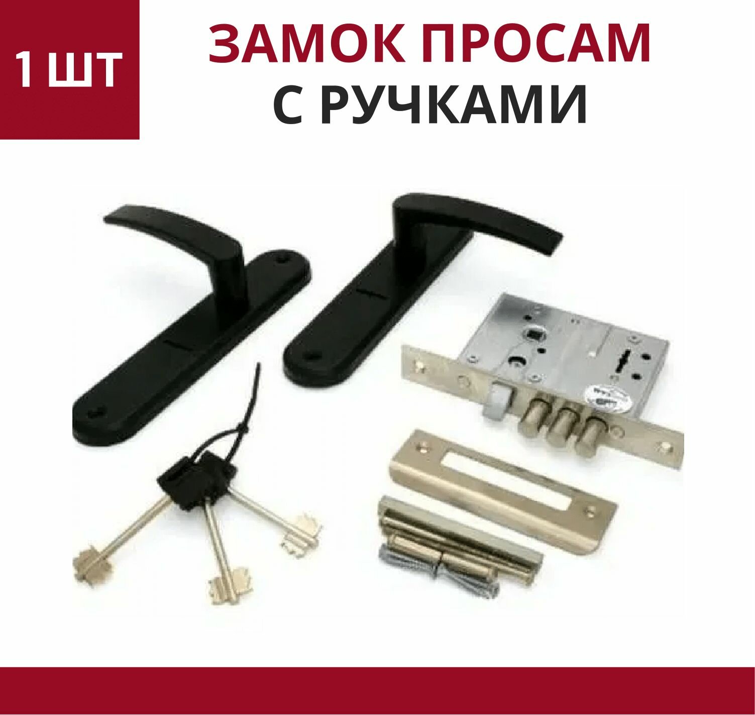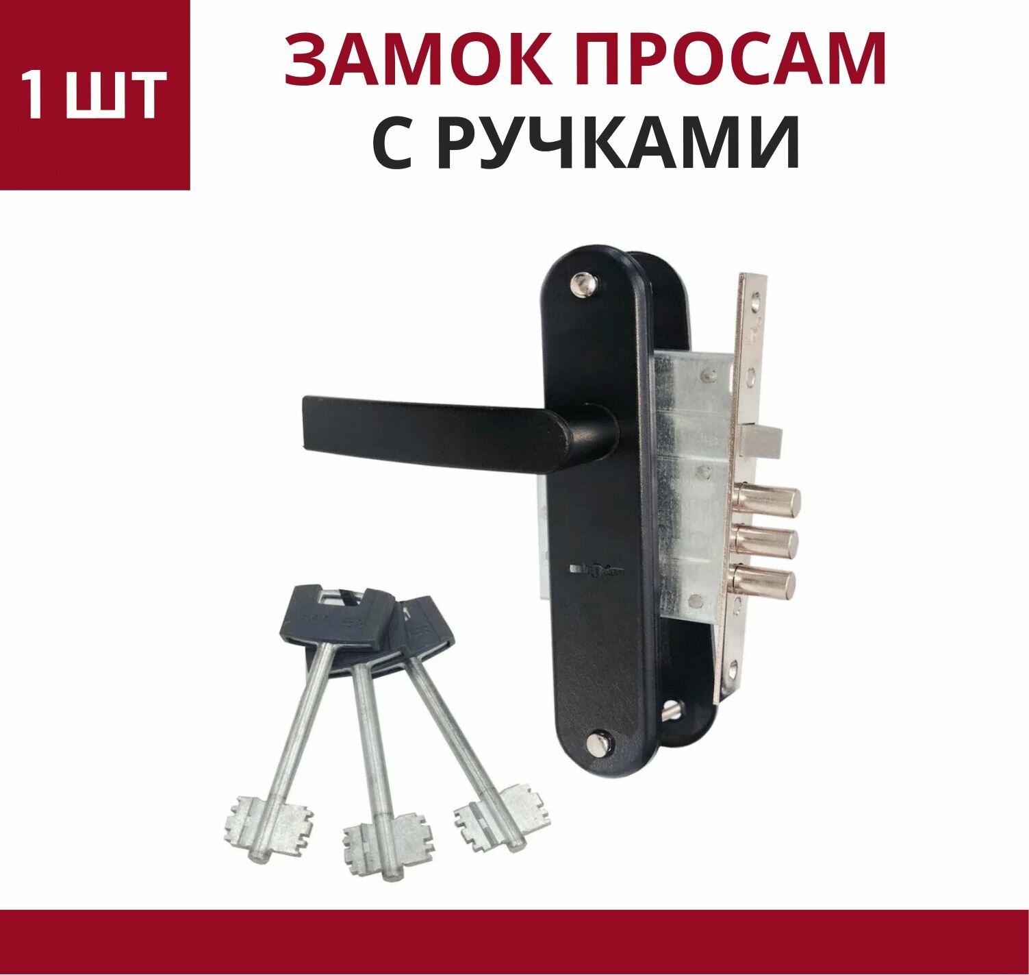 Сувальдный замок ПроСАМ 76704 ЗВ9-8/13, врезной, черный, с ручками, 3 ключа