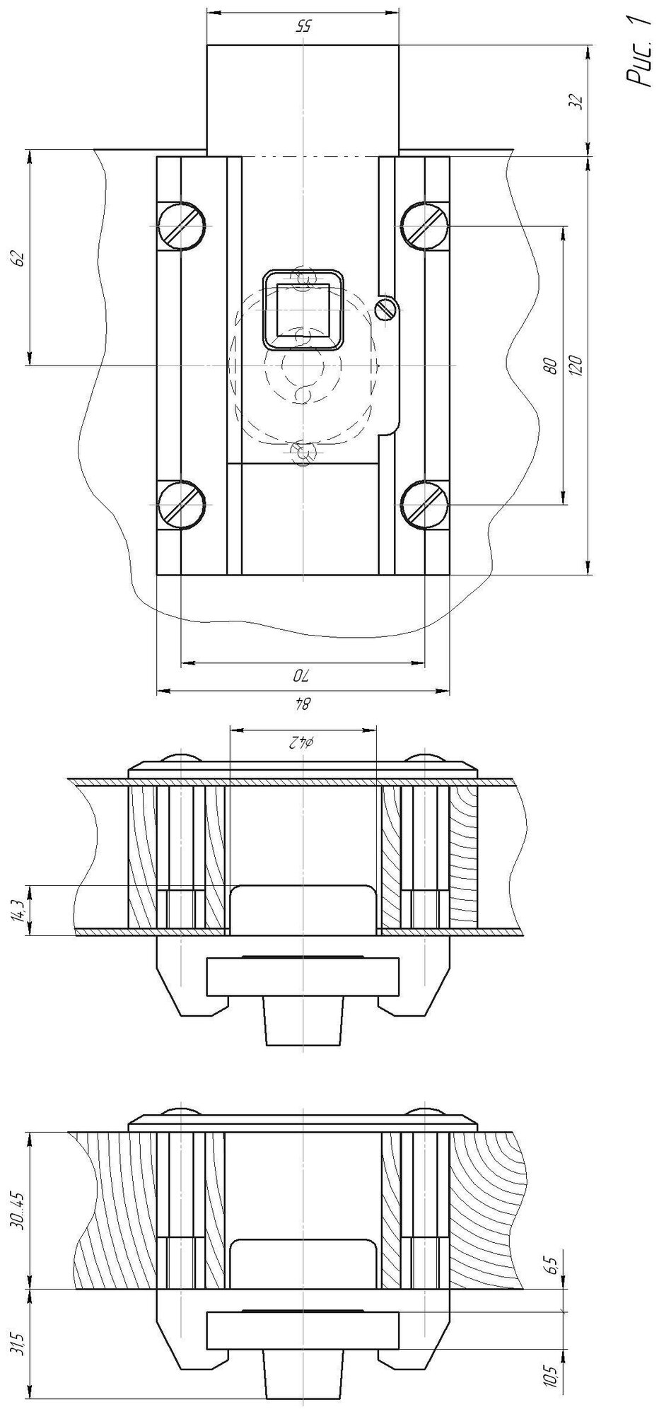 | Удаление ключевого отверстия | 62 мм |