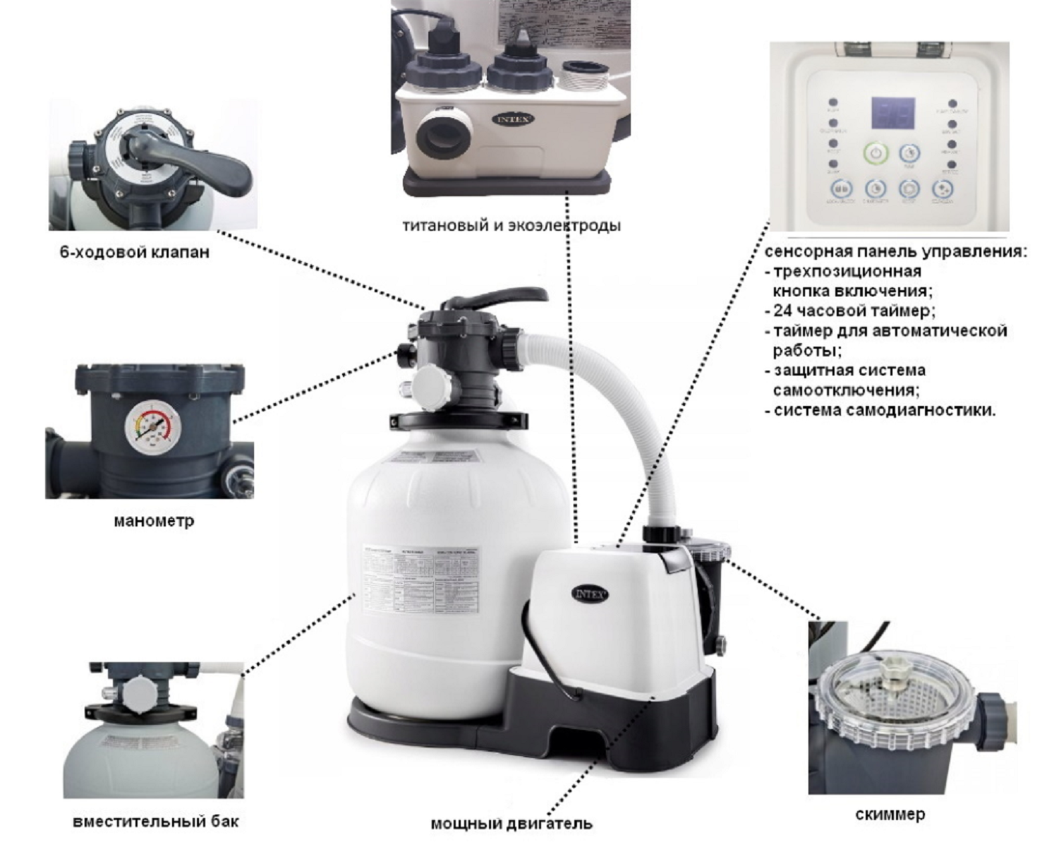 Песочный фильтр + хлоргенератор Intex 26680 производительность 10000 л/ч