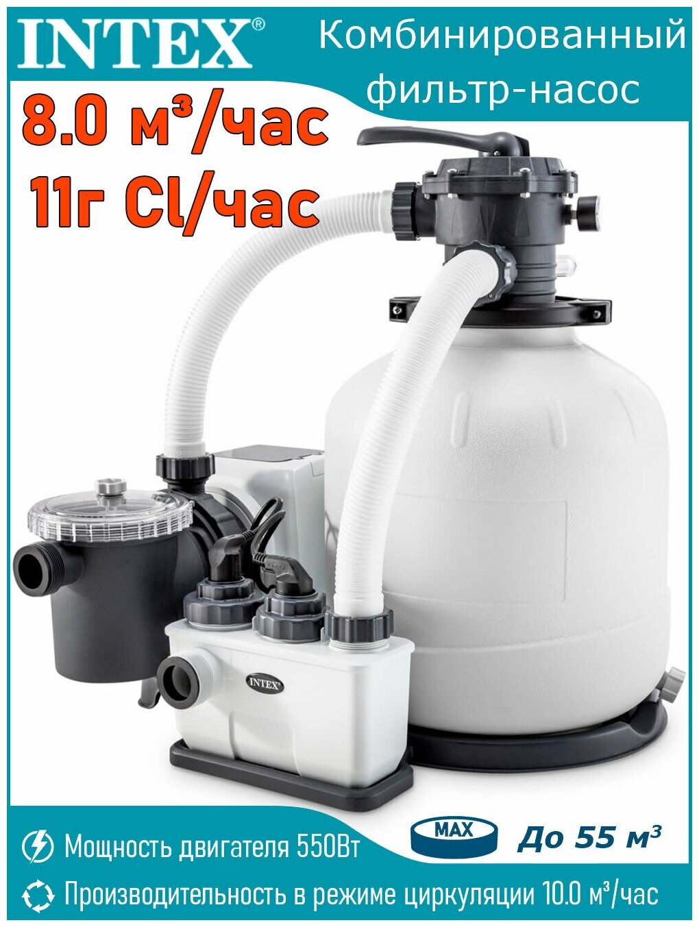 Купить 28680/26680 Песочный фильтр насос + хлоргенератор для бассейна (8000л/ч) Intex