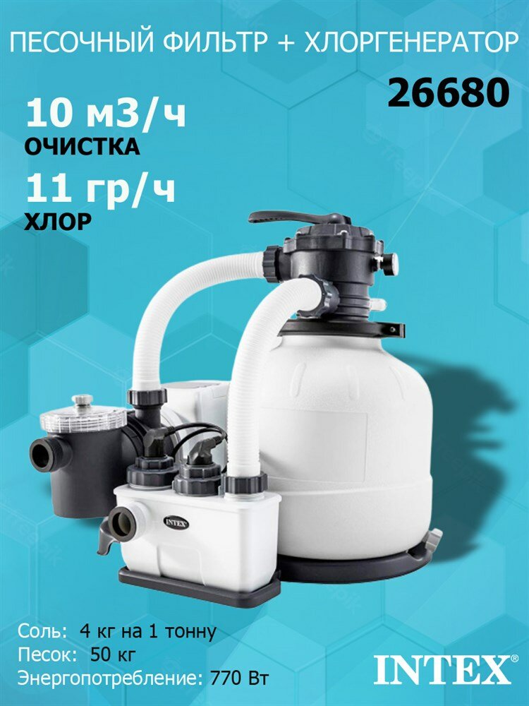 28680/26680 Песочный фильтр насос + хлоргенератор для бассейна (8000л/ч) Intex интересное: