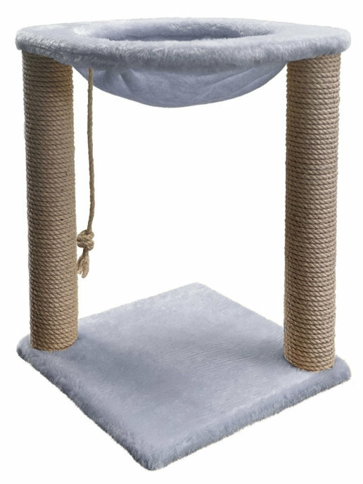Когтеточка для кошки "Зверьё Моё" столбик с полкой, с лежанкой, джут, серебро 40х40х60см