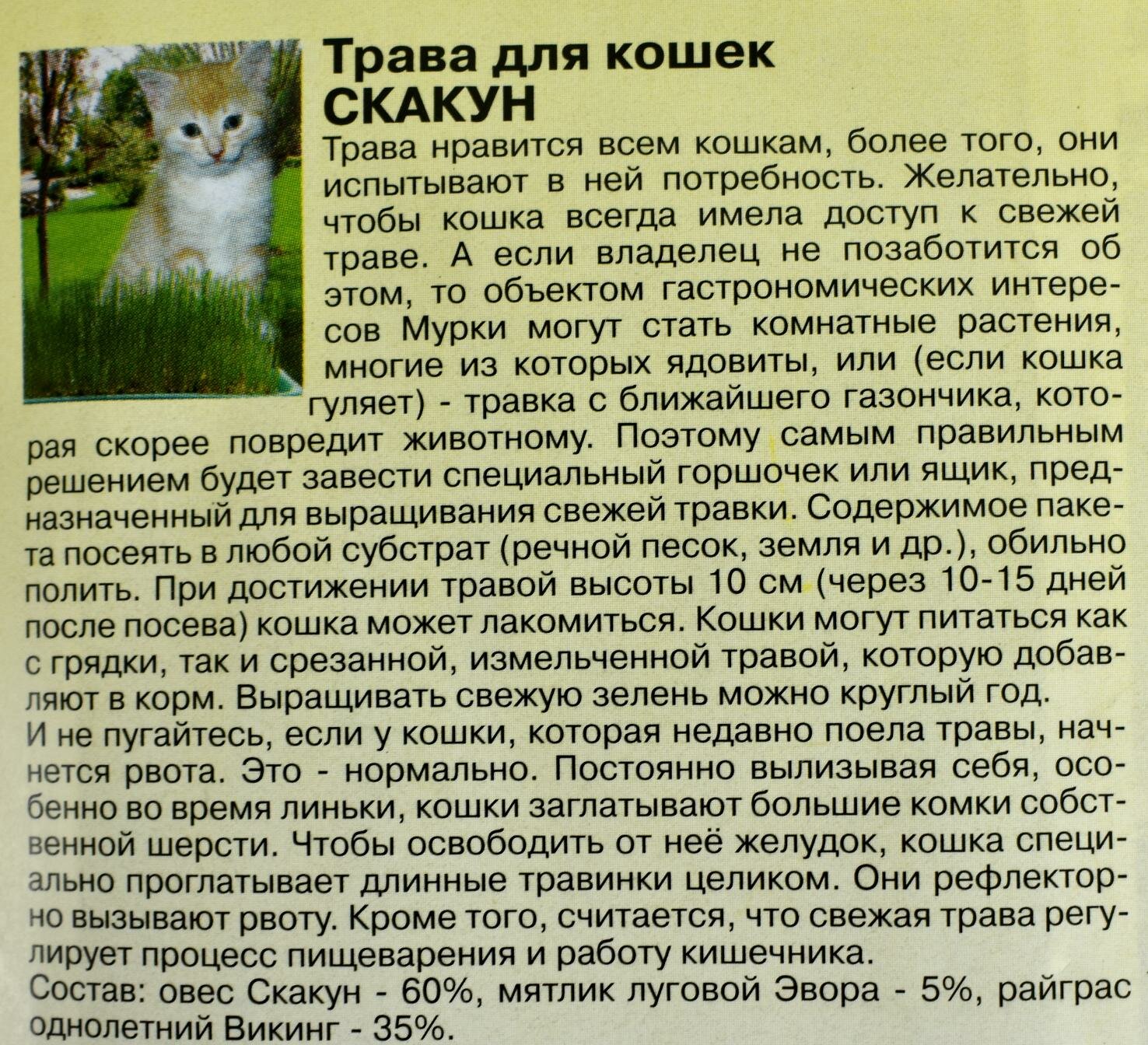 Ниже Вы можете прочитать отзывы на Семена Трава для кошек Скакун (гавриш) 10г, ознакомится с подробными характеристиками, посмотреть интересные обзоры и фотографии на Семена Трава для кошек Скакун (гавриш) 10г.