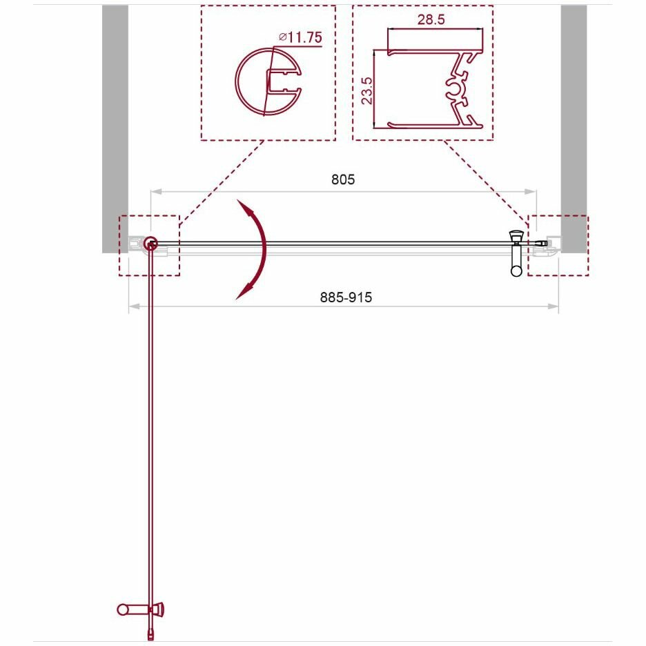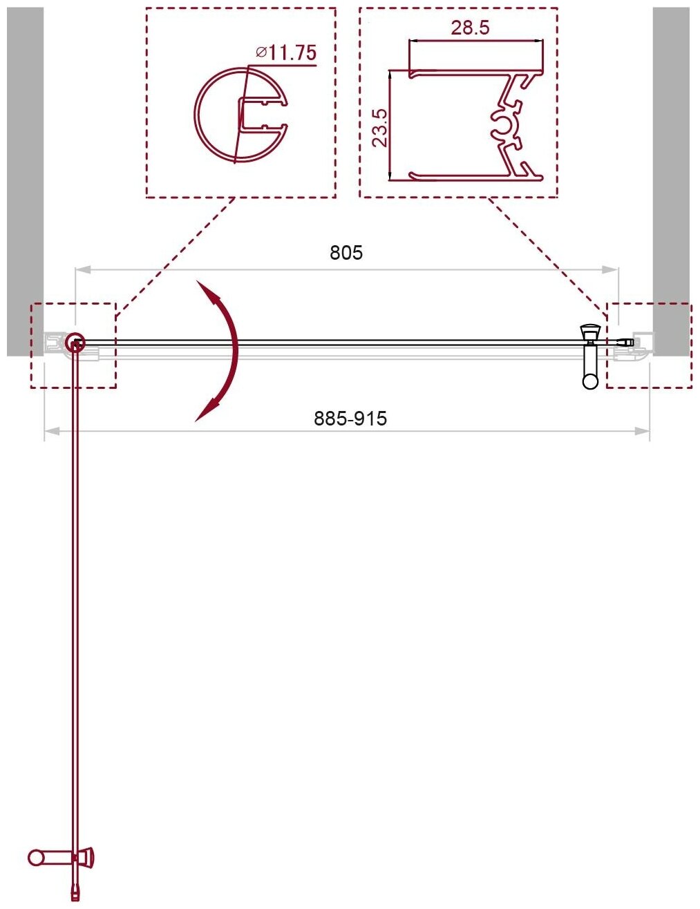| Дополнительная информация | Стеклянная душевая дверь для установки в нишу. Монтаж на поддон или непосредственно на плитку (универсальная). Поддон в комплект не входит - заказывается дополнительно |