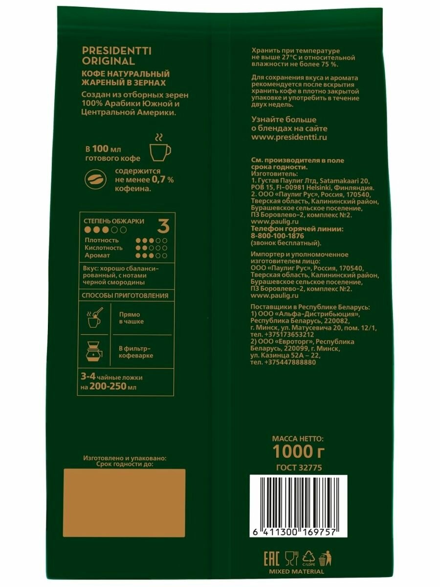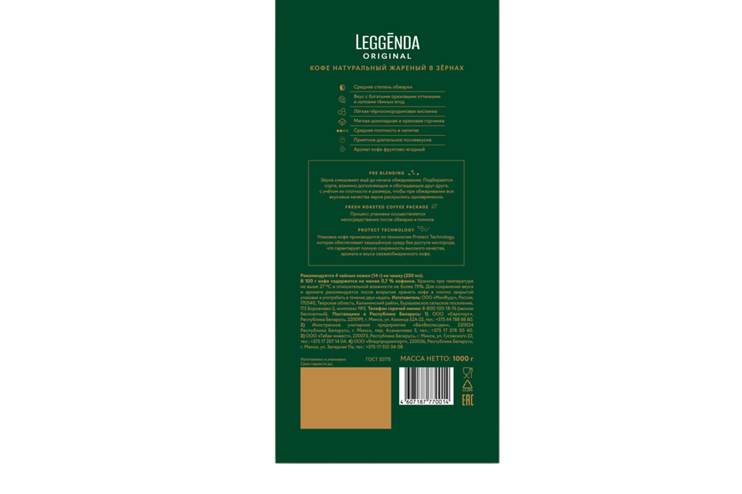 | Страна произрастания | Бразилия / Колумбия / Россия |