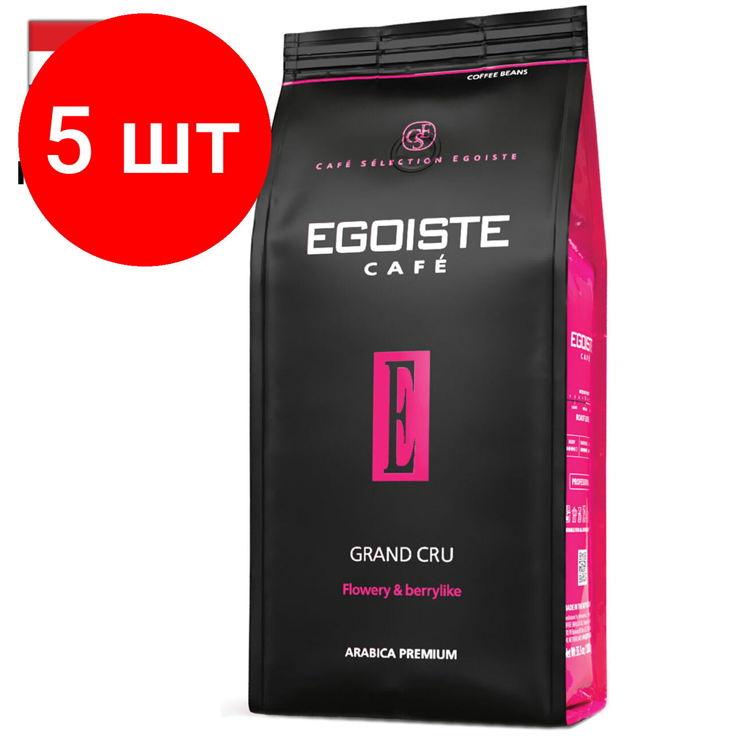 Купить Комплект 5 шт, Кофе в зернах EGOISTE "Grand Cru", 100% арабика, 1000 г, вакуумная упаковка, EG10004023