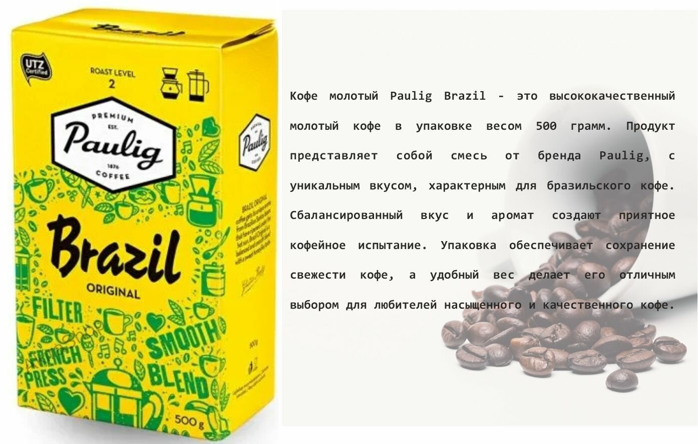 Кофе молотый Paulig Brazil, 500 гр, Финляндия интересное: