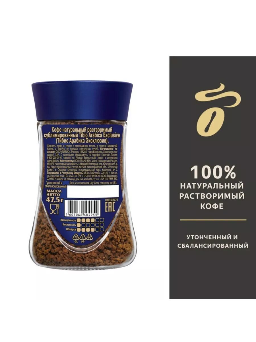 Кофе "тибио арабика эксклюзив" раств. 47,5ГР интересное: