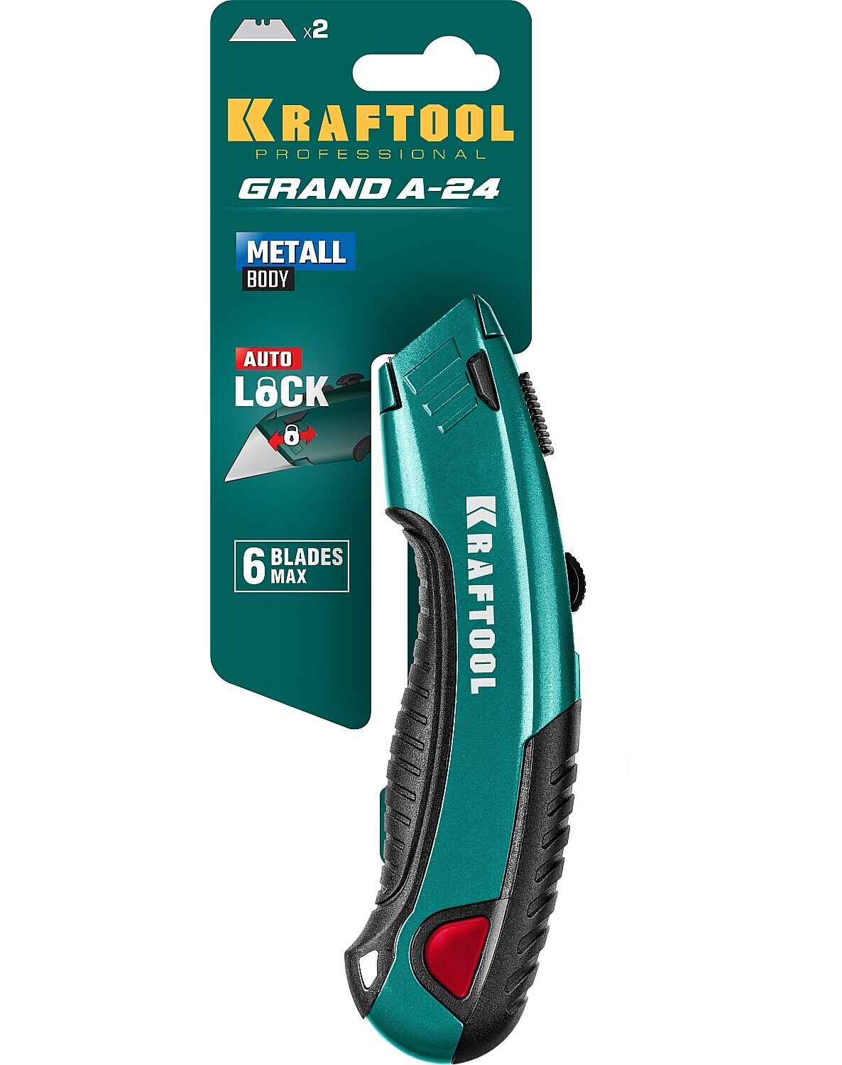 KRAFTOOL GRAND-24, универсальный нож с автостопом, 2 трап. лезвия А24 ( 09241_z02 )