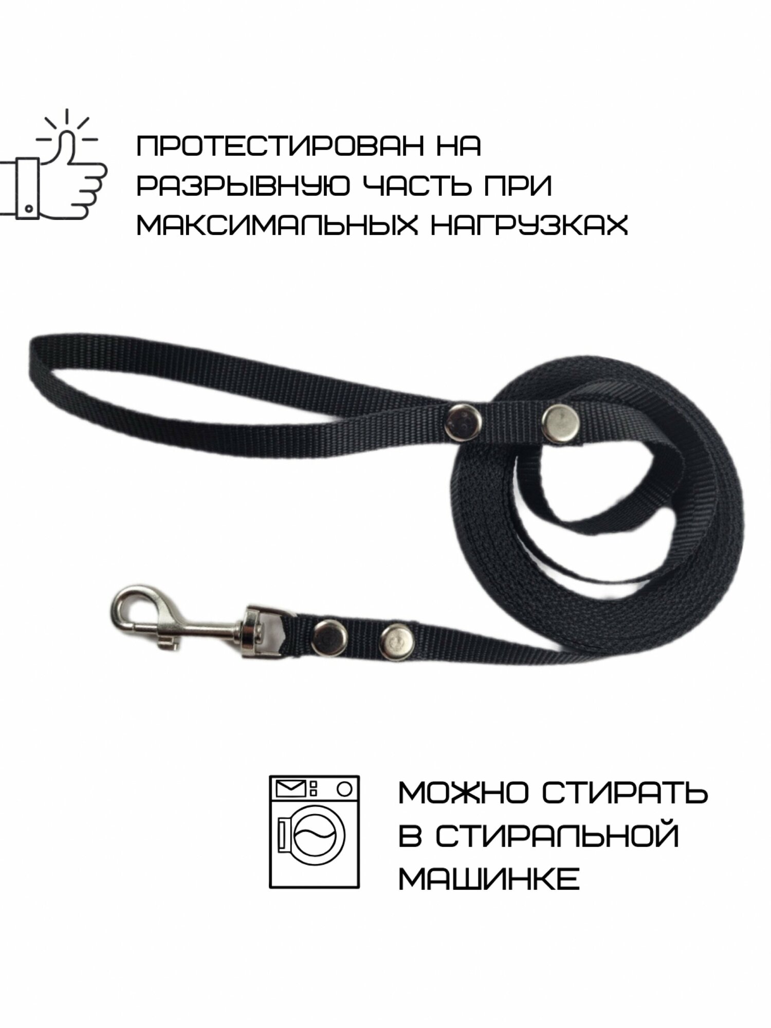 Поводок Хвостатыч для собак нейлоновый классический 1.5 м х 15 мм (Черный)
