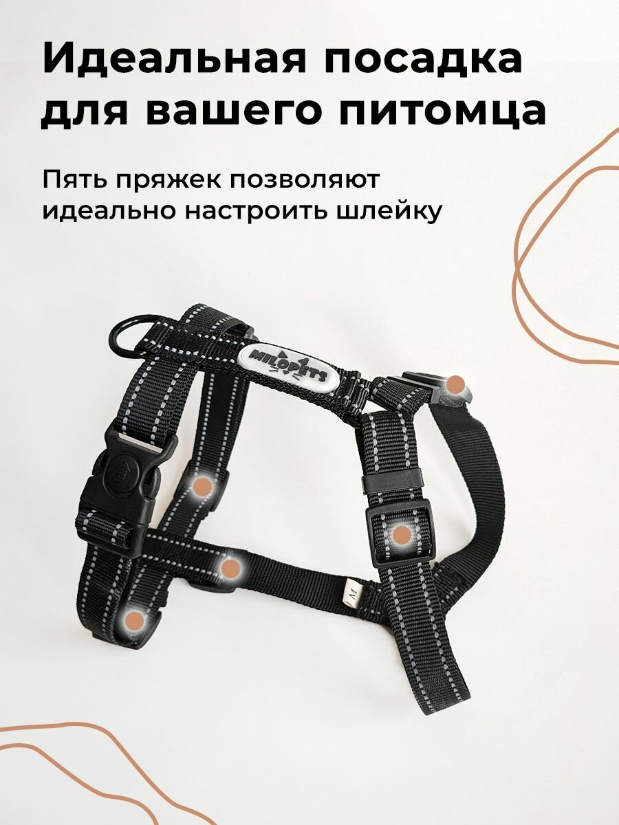 Шлейка MiloPets для собак мелких, средних и крупных пород анатомическая, размер S 39-48 см, черный