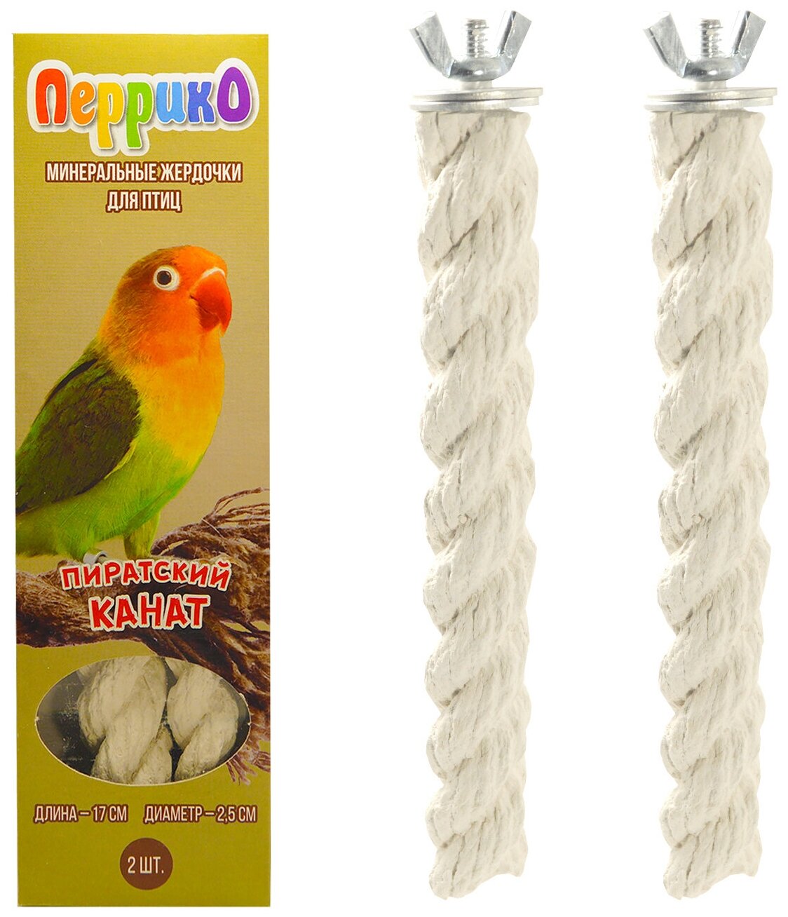 Перрико Минеральные жердочки для птиц "Пиратский канат", 17 см, диаметр 2,5 см