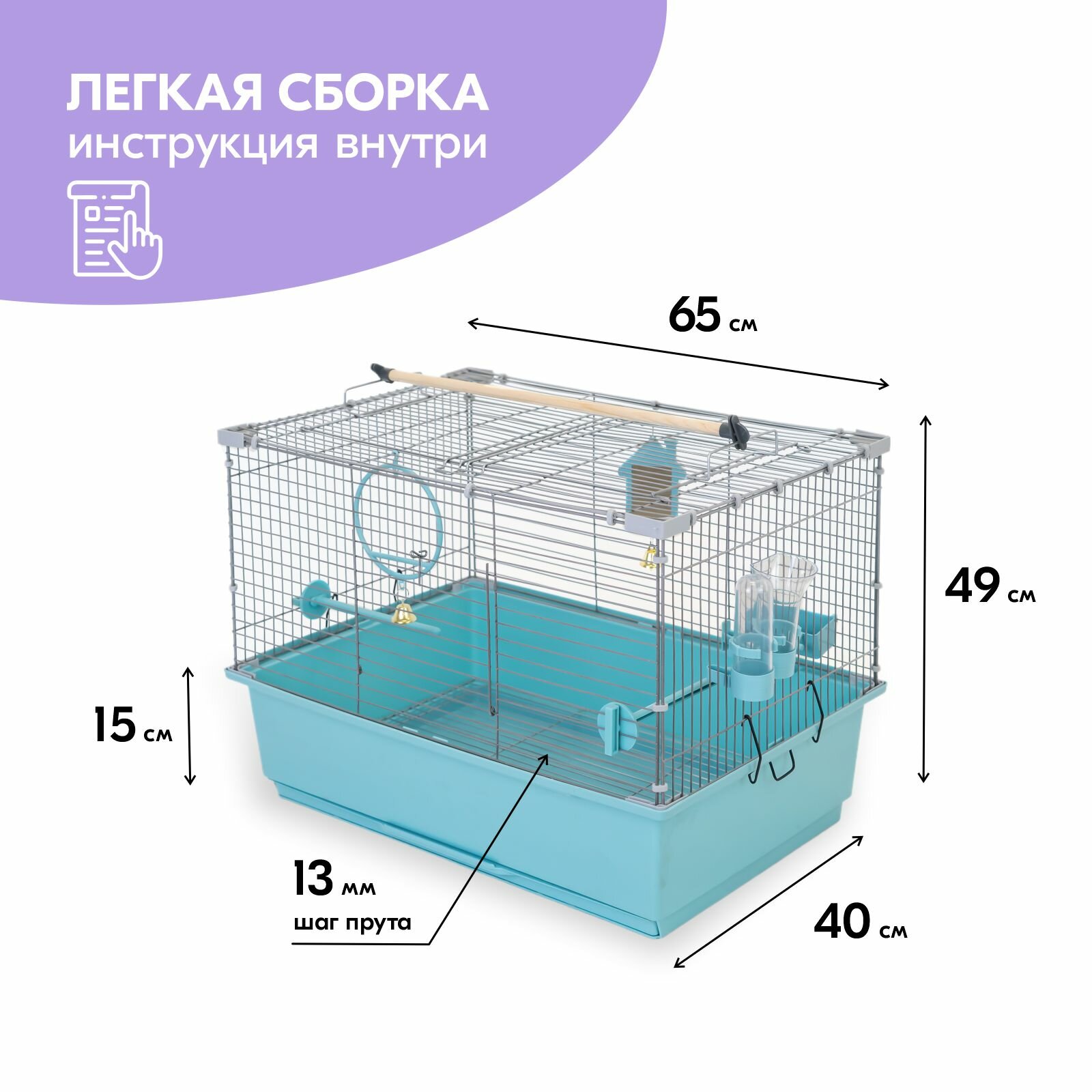 Купить Клетка ГОВОРУН-1 "PetTails" для птиц разборная 60 х 40 х h49, 1 этаж, бирюзовая