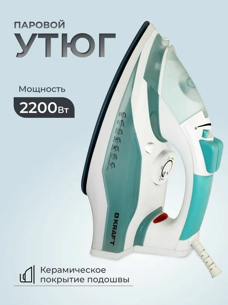 Утюг KRAFT KF-CI2221 2200 Вт, белый/зеленый
