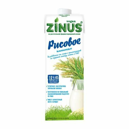Купить Mолоко Рисовое Zinus Vegan из бурого риса, 1 л, Россия