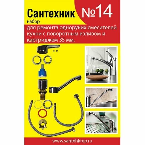 Набор для ремонта одноруких смесителей кухни с поворотным изливом и картриджем 35 мм Сантехник №14