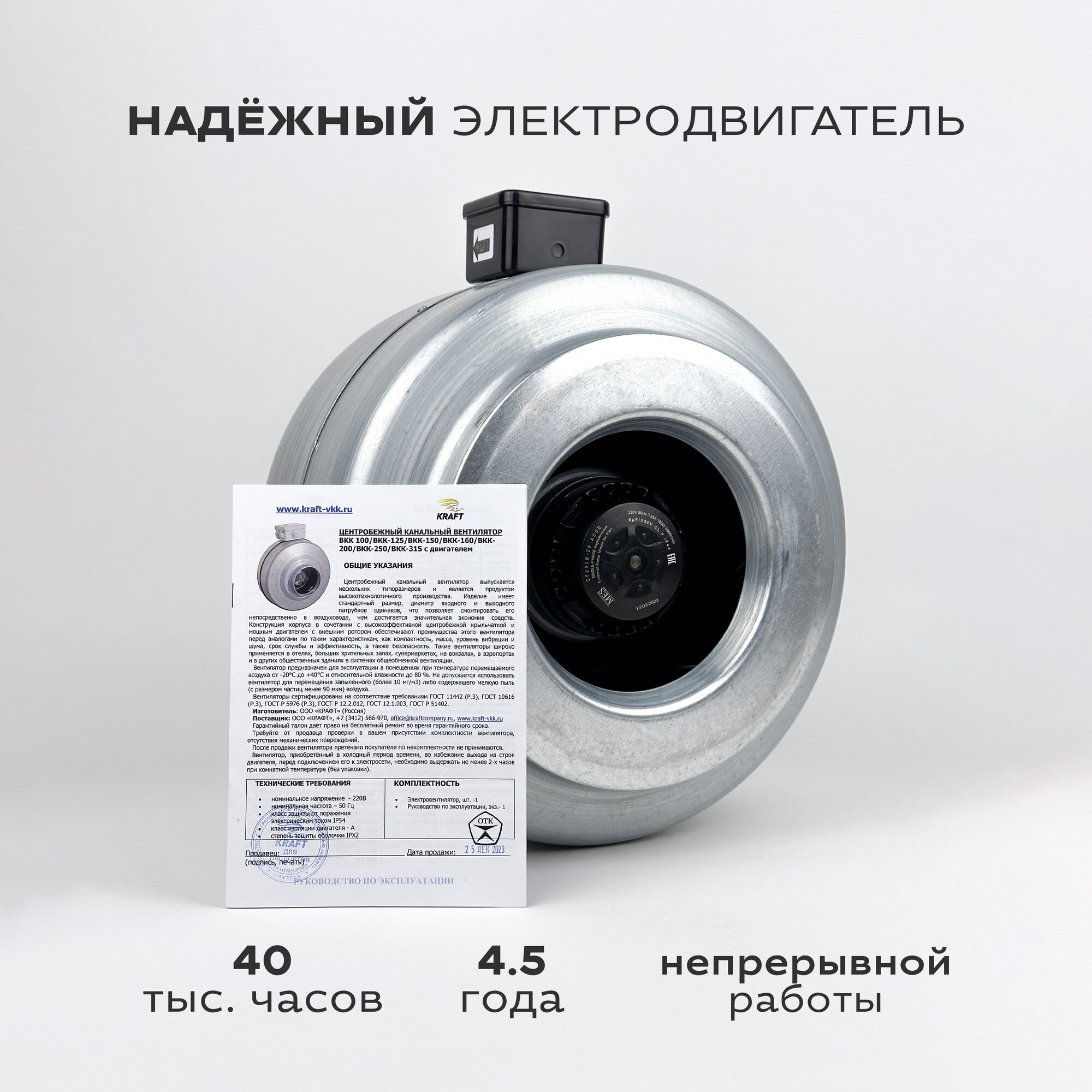 Вентилятор канальный круглый ВКК-315 в металлическом корпусе, 220В, 1870 м3/час, 550 Па, 270 Вт, для круглых воздуховодов диаметром 315 мм, IP 44