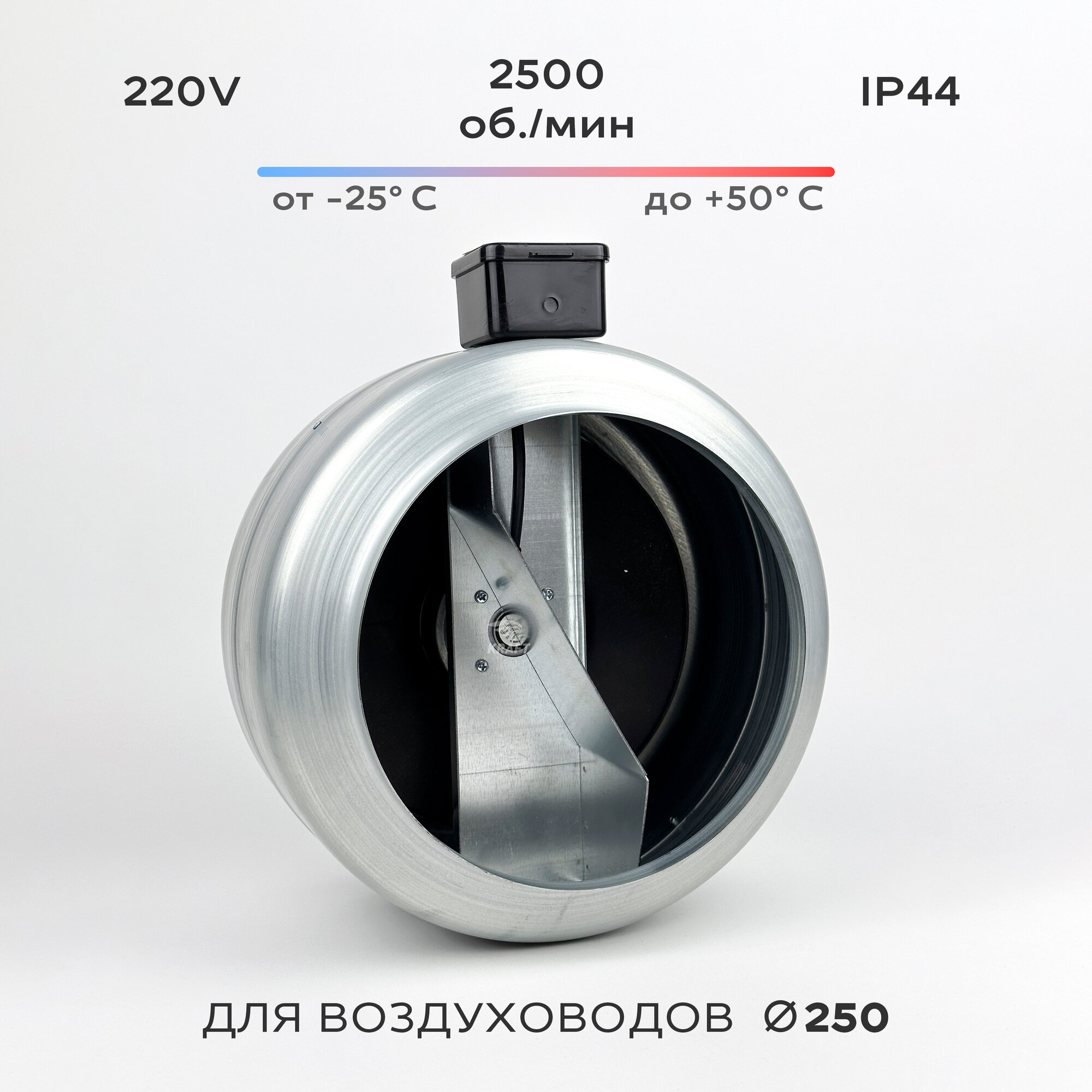 Купить Вентилятор канальный круглый ВКК-250 в металлическом корпусе, 220В, 1420 м3/час, 480 Па, 70 Вт, для круглых воздуховодов диаметром 250 мм, IP 44
