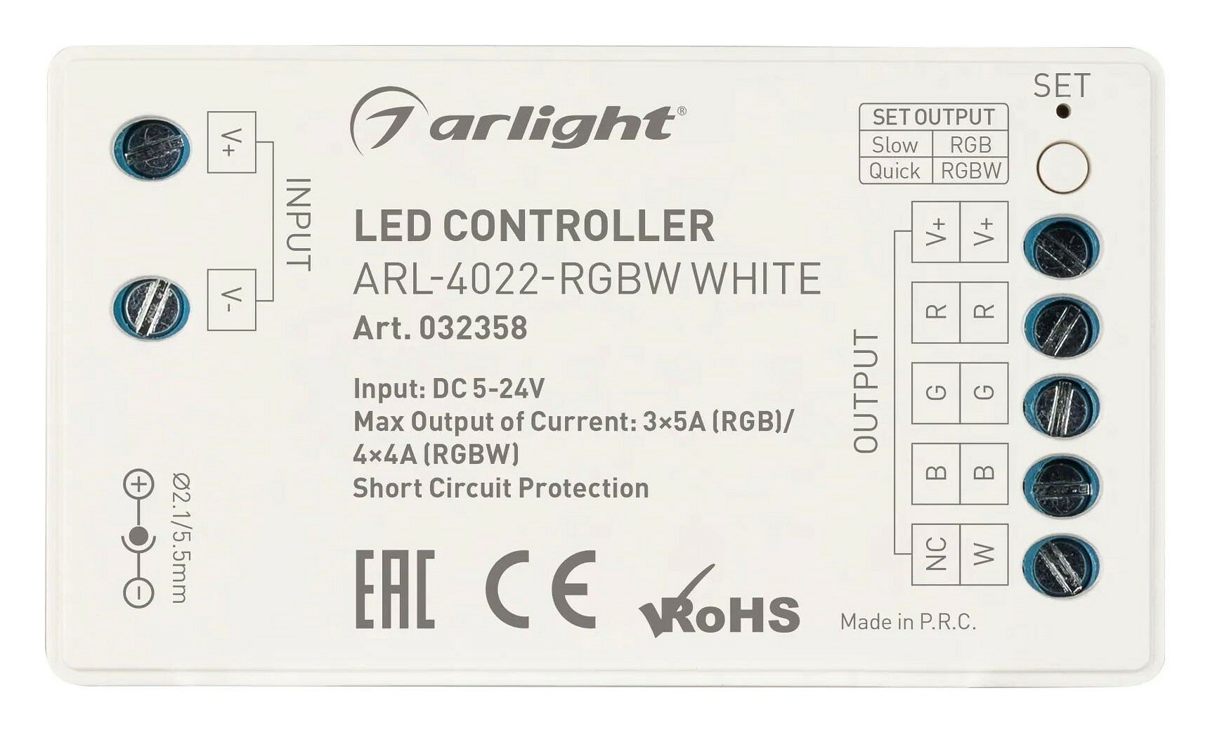 032358 Контроллер ARL-4022-RGBW White (5-24V, 4x4A, ПДУ 24кн, RF) (Arlight, IP20 Пластик, 3 года)