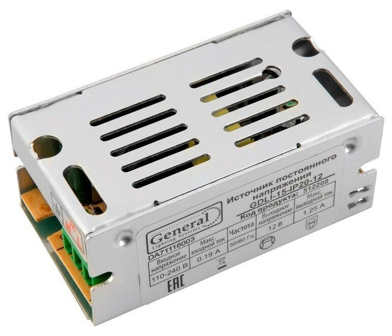 Блок питания для светодиодной ленты GENERAL 15W IP20 12V защитный кожух