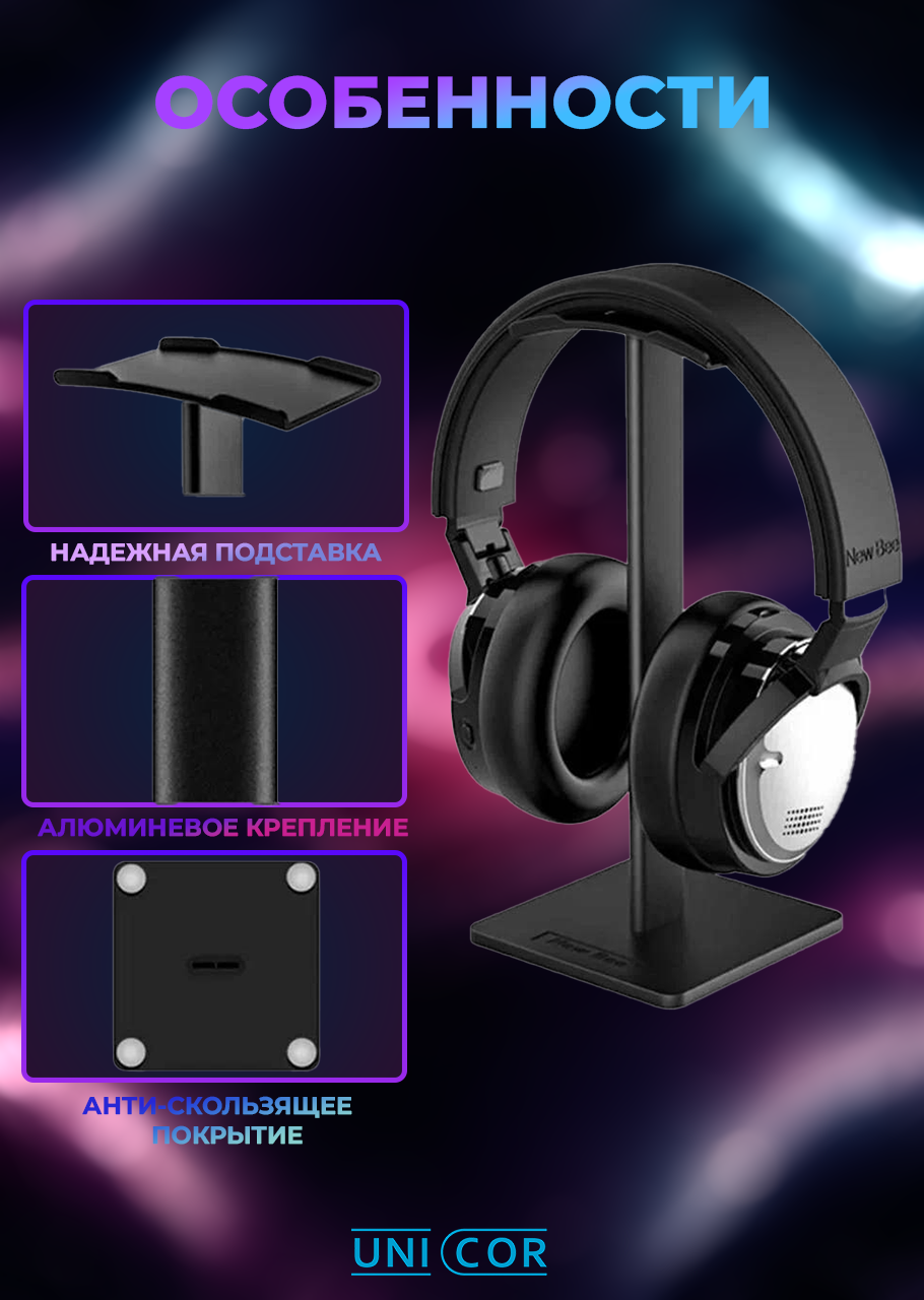 Подставка для полноразмерных наушников. гарнитуры , стойка держатель для игровых наушников, черный