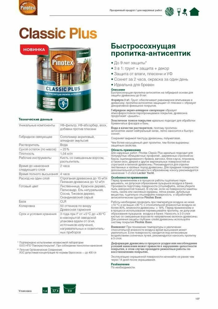 СохранитьСредство деревозащитное pinotex classic plus 9л ель натуральная, арт.5727948 интересное: