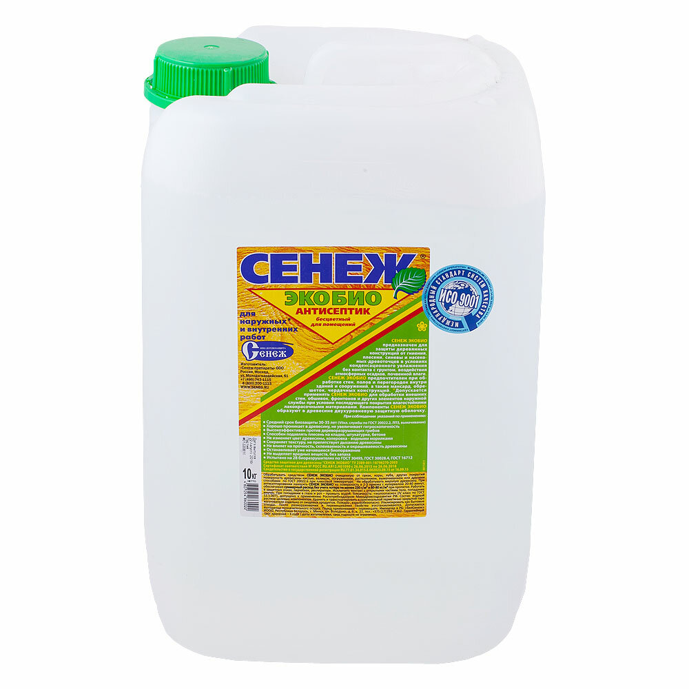 Сенеж экобио Экономичный бесцветный антисептик для помещений и деревянных конструкций под навесом. Канистра 10 кг.