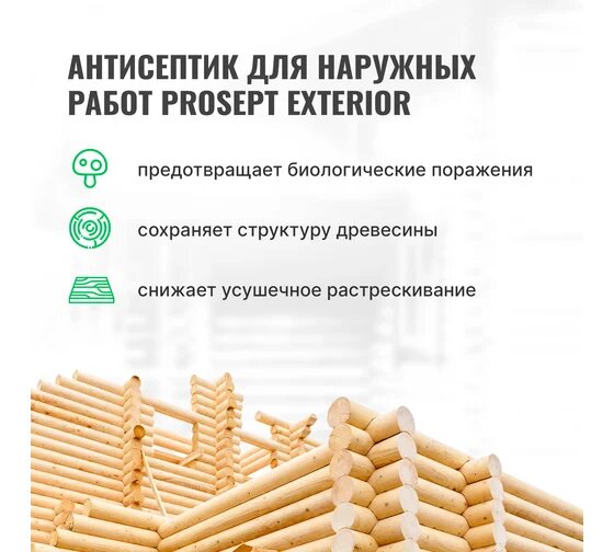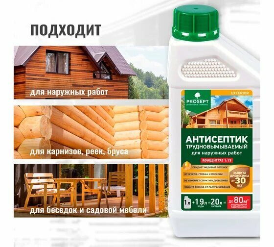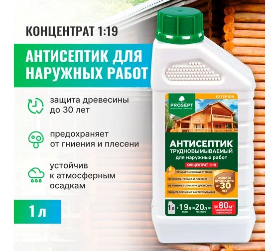 Антисептик трудновымываемый для наружных работ PROSEPT EXTERIOR концентрат 1:19 / 1 л интересное: