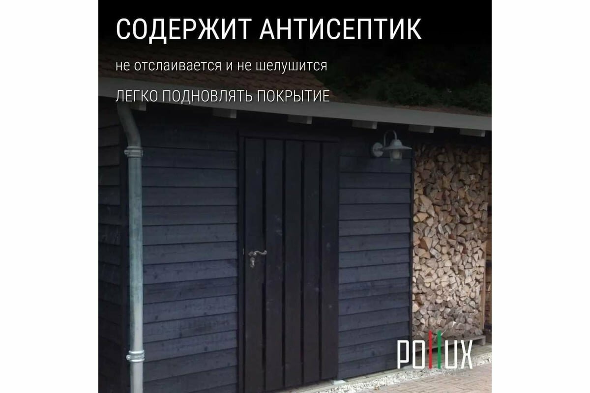 Пропитка для дерева декоративная акриловая матовая Pollux FB Water 100 "Блэк Сенд" 3 в 1, антисептик / лазурь / грунтовка для древесины, быстросохнущая, без запаха, цвет черный, 1 литр