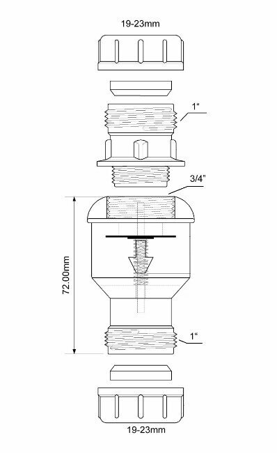 Обратный клапан с отводом на 90 градусов вход 3/4"мама, выход ф19-23мм McALPINE TUNVALVE
