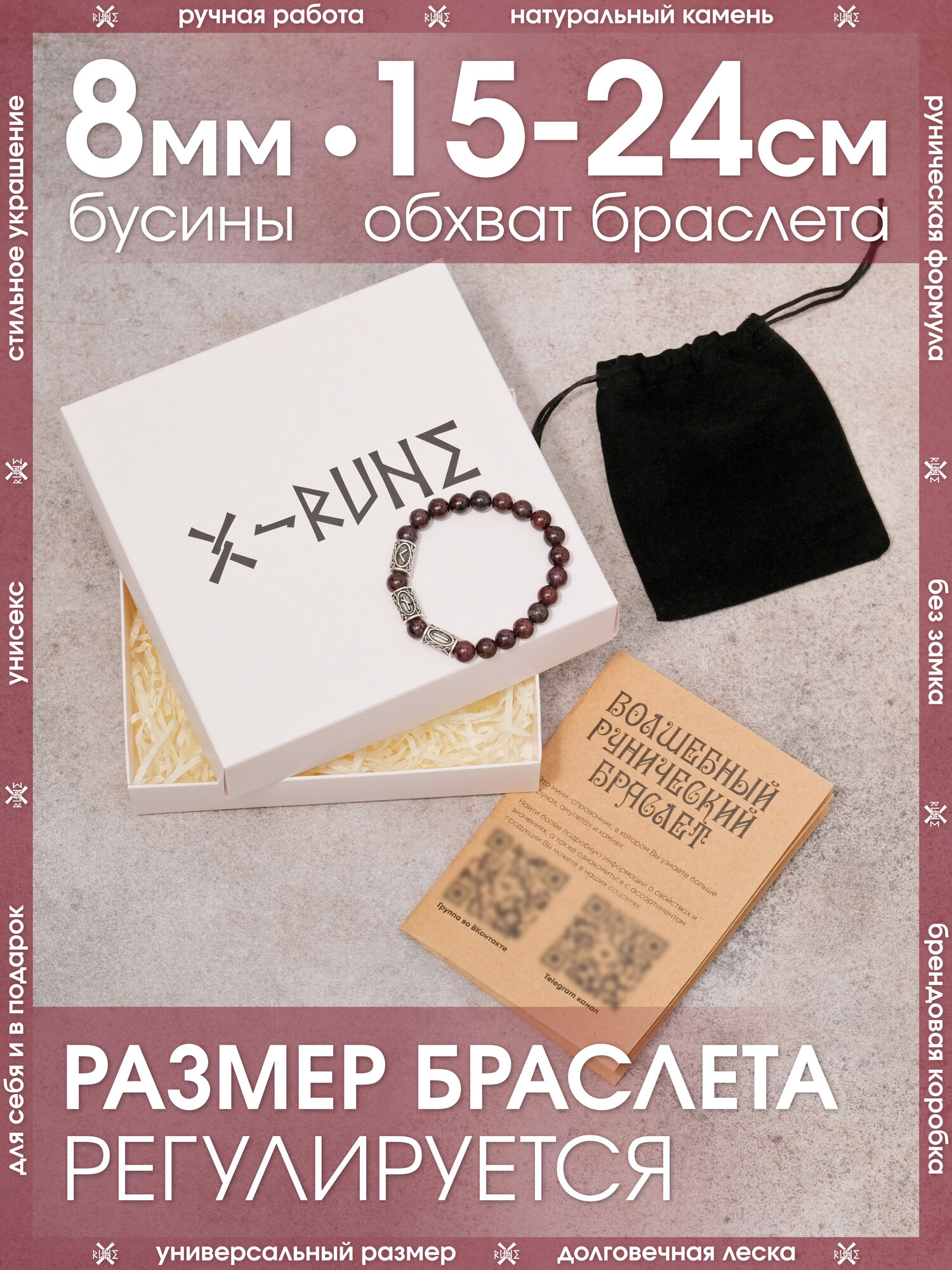 | Комплектация | Брендовая коробка X-Rune - 1 шт., брошюра с расшифровкой значения рунных формул - 1 шт., мешочек для хранения - 1 шт., браслет - 1 шт. |