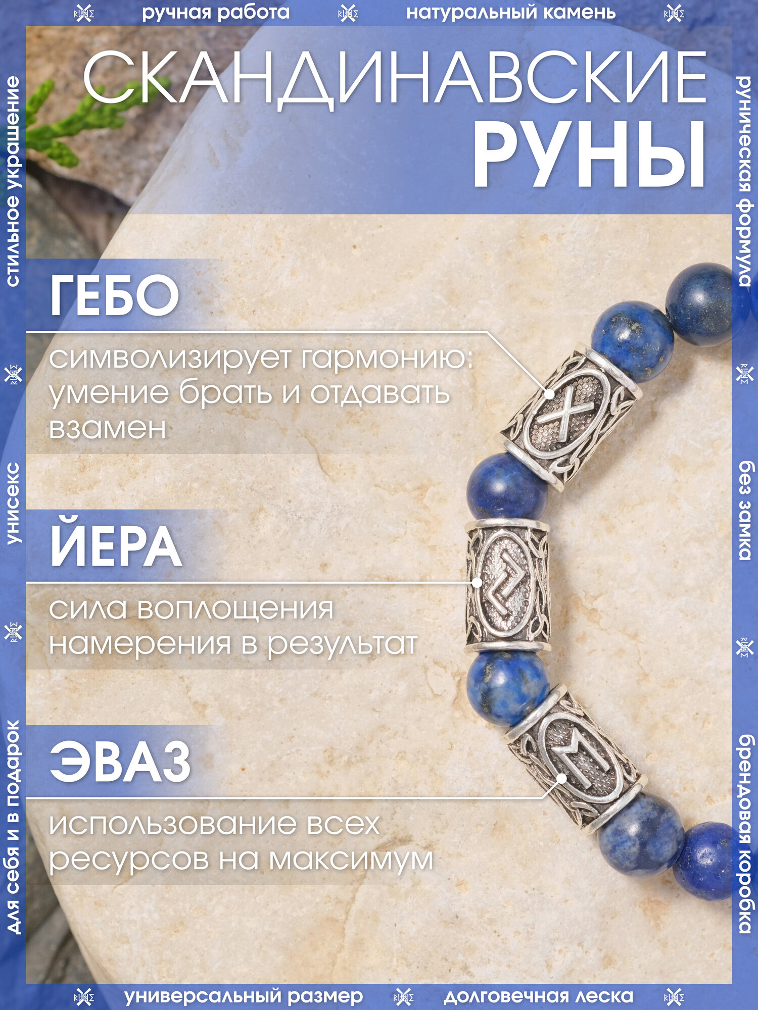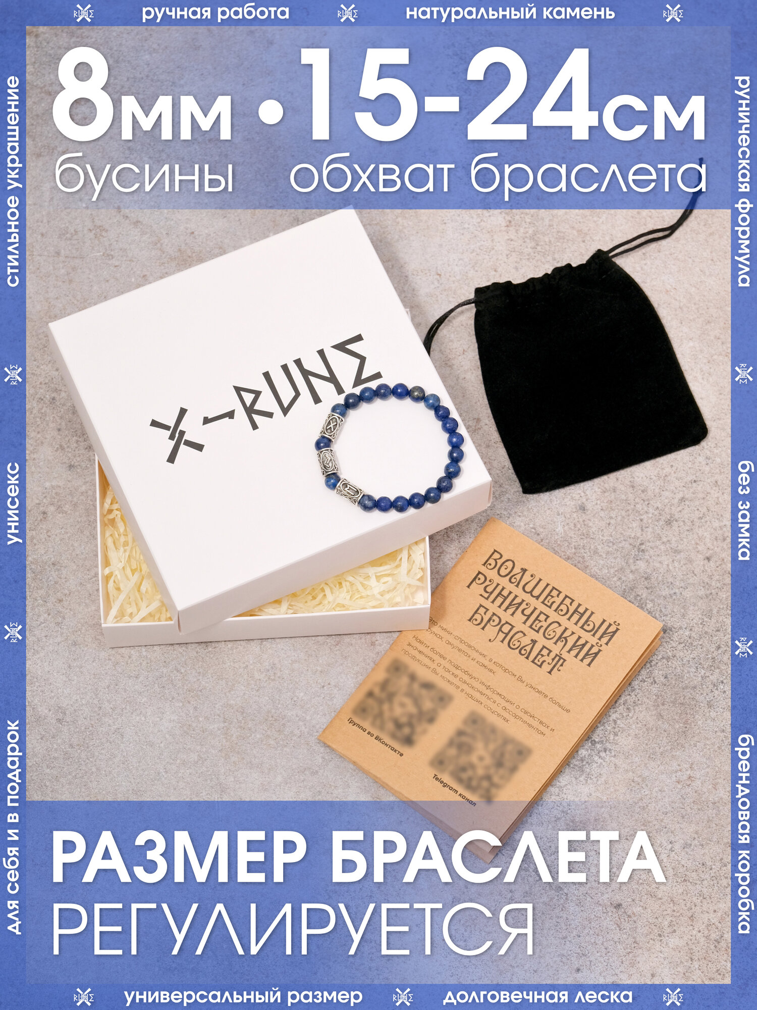 Купить Браслет из натурального камня Лазурита/X-Rune/Талисман с рунами из металла/Браслет из бусин, бижутерия, украшение