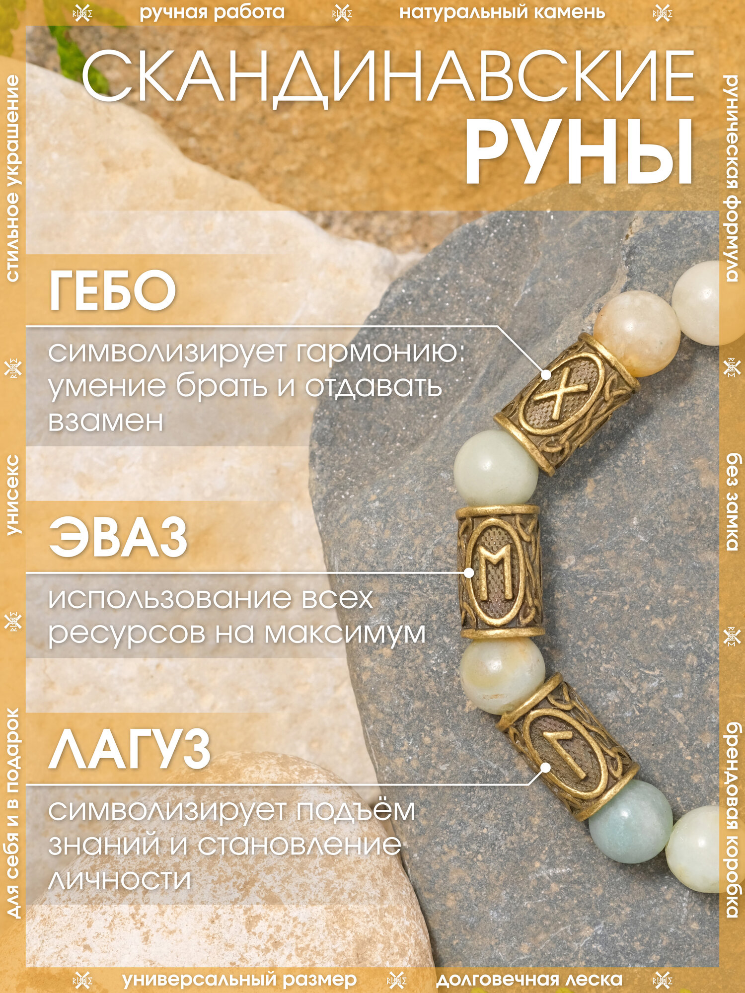 Браслет-оберег из камня Цоизит/Руническая формула гармонии/Браслет-талисман из бусин с рунами, бижутерия, украшение