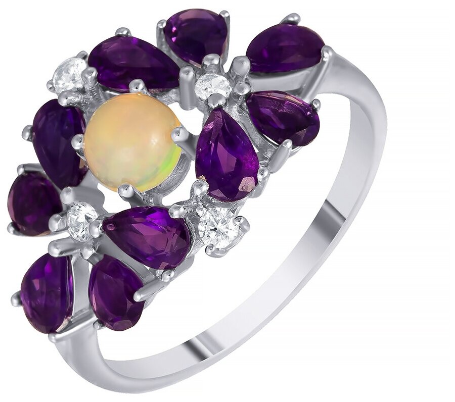 Серебряное кольцо с аметистом, цирконием, опалом,ELEMENT47,аметист,кубический цирконий,опал,вес - 2.79 гр. интересное: