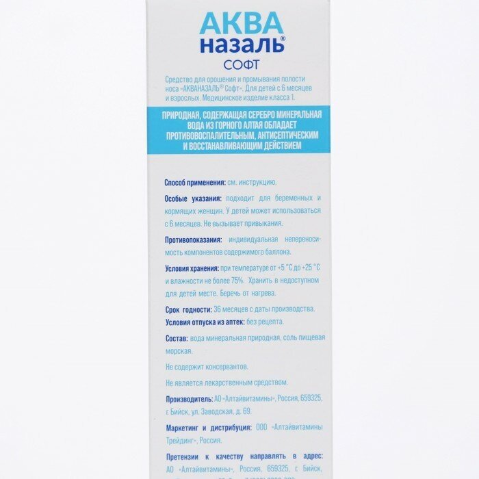 | Комплектация | Акваназаль Софт - аэрозоль назальный, 150 мл |